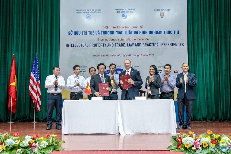 Ngày 07.12.2016, Trường Đại học Kinh tế - Luật, Đại học Quốc gia TP.HCM đã phối hợp với Bộ Khoa học & Công nghệ và Trường Đại học Indiana (Hoa Kỳ) tổ chức Hội thảo quốc tế "Sở hữu trí tuệ và thương mại: Luật và kinh nghiệm thực thi", đồng thời, ra mắt Trung tâm Pháp luật Hoa Kỳ trực thuộc Trường. Tham dự Hội thảo có đại diện của Bộ Khoa học & Công nghệ, Bộ Tư pháp, lãnh đạo Trường Đại học Kinh tế - Luật cùng hơn 150 học giả, chuyên gia, nhà nghiên cứu pháp luật trong và ngoài nước.