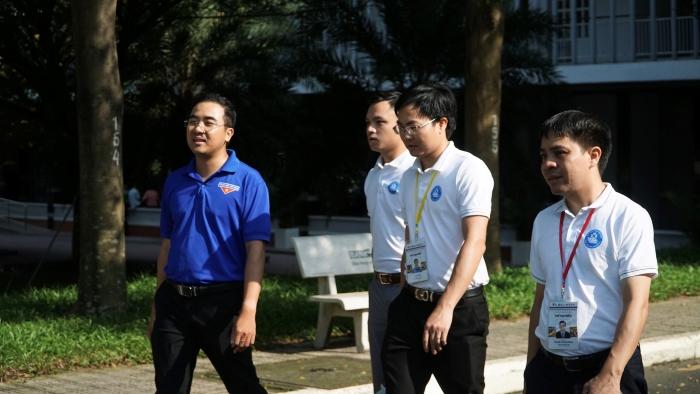 Dẫn đầu đoàn tham quan của Đại học Thái Nguyên có đồng chí đ/c Lê Văn Hiếu - Bí thư Đoàn Thanh niên Đại học Thái Nguyên và đ/c Nguyễn Quang Đông - Chủ tịch Hội Sinh viên Đại học Thái Nguyên.