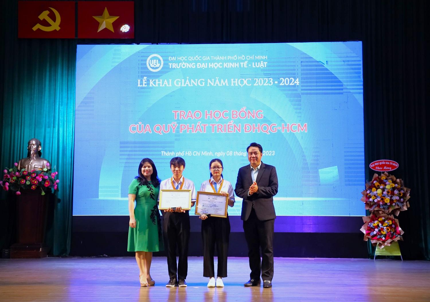 Tại buổi lễ, nhà trường đã vinh danh những tân sinh viên trúng tuyển vào Trường với vị trí Thủ khoa của các phương thức xét tuyển. Bên cạnh đó, Trường Đại học Kinh tế - Luật đã nhận tài trợ từ các tổ chức, doanh nghiệp với tổng giá trị là 3.425.000.000 đồng.