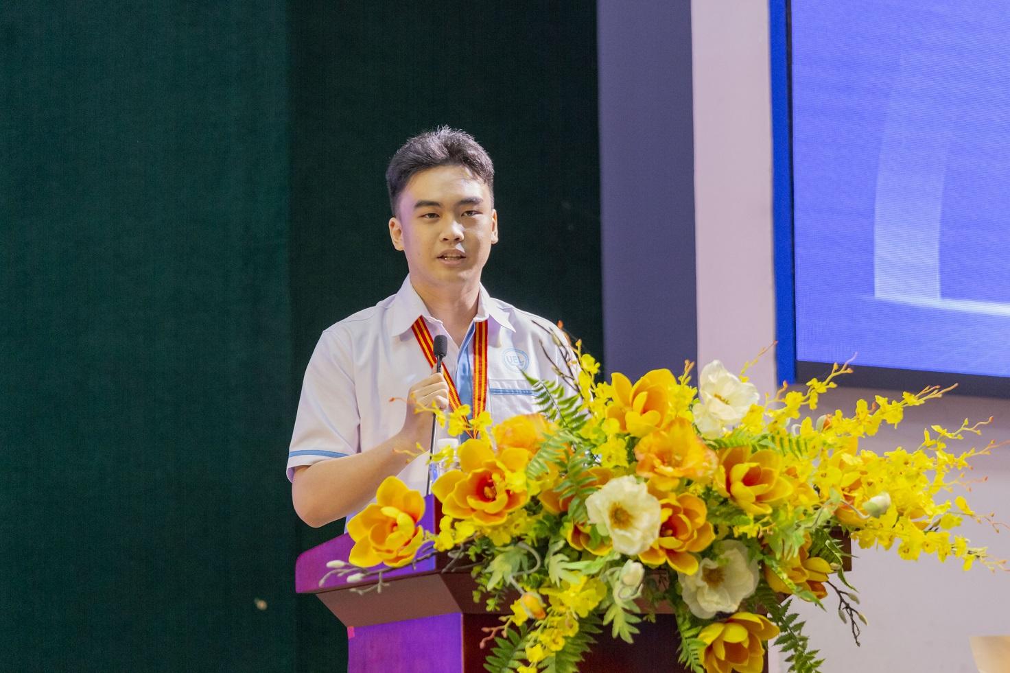 Sinh viên Nguyễn Đỗ Quốc Kỳ đại diện tân sinh viên K23 phát biểu cảm nghĩ