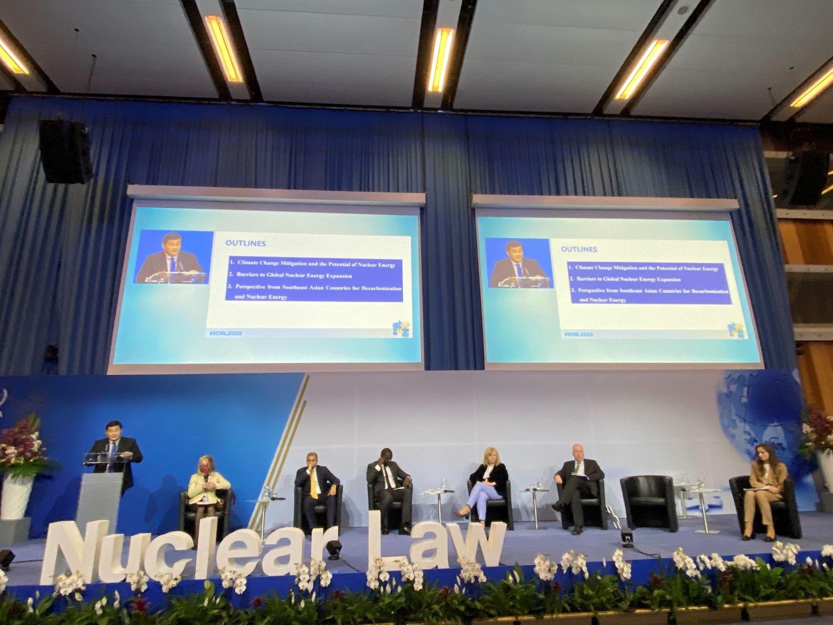 Tiến sĩ Đào Gia Phúc - Viện Trưởng Viện Pháp luật Quốc tế và So sánh Trường Đại học Kinh tế - Luật đại diện đoàn Việt Nam trình bày tham luận tại Hội nghị về chủ đề Triển vọng của năng lượng hạt nhân trong ứng phó với biến đổi khí hậu và hàm ý chính sách cho các nước khu vực Đông Nam Á. Được biết đây là tham luận được trình bày duy nhất của Việt Nam tại Hội nghị. Bài trình bày của diễn giả TS Phúc được Hội nghị quan tâm, đánh giá cao.