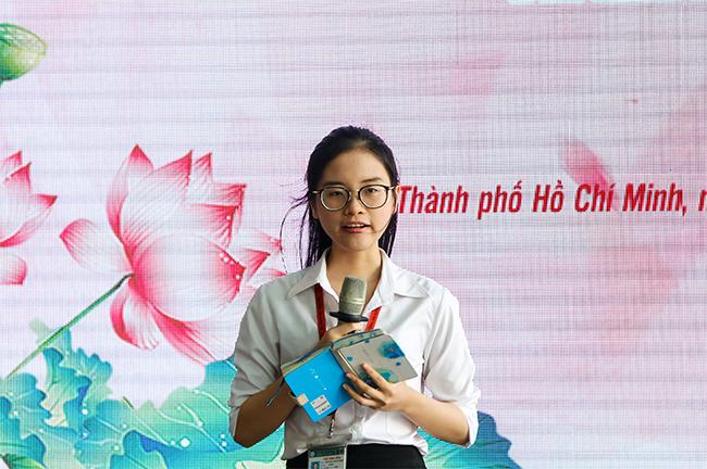 Ảnh: Bạn Nguyễn Chí Thanh với phần trình bày ca khúc "Tiếng hát từ thành phố mang tên Người"
