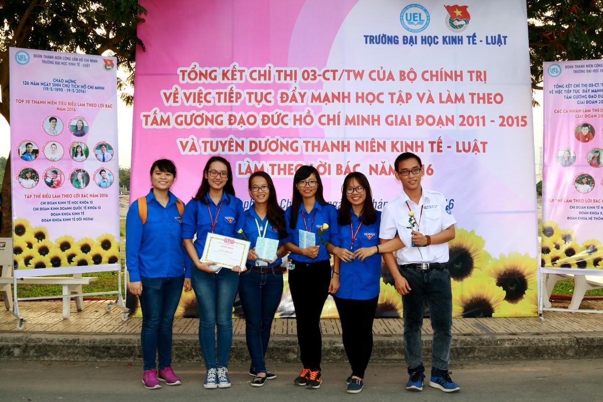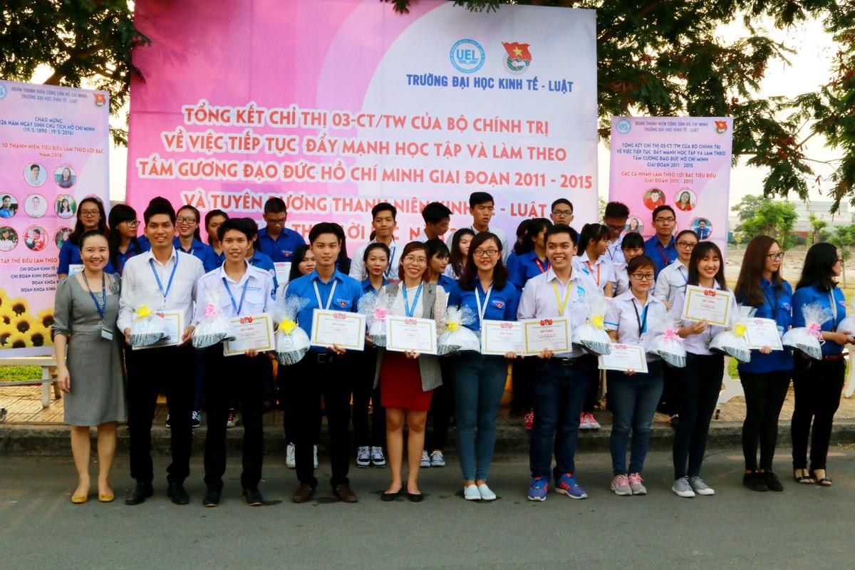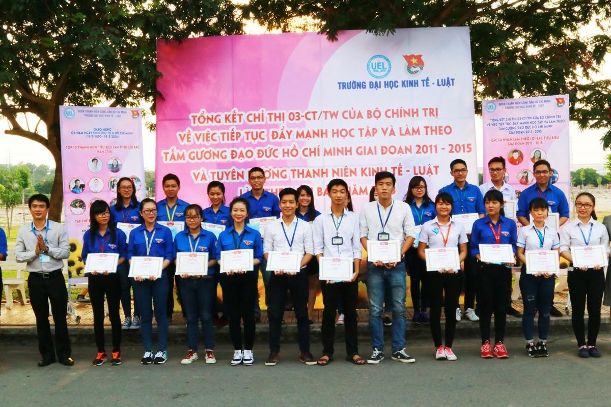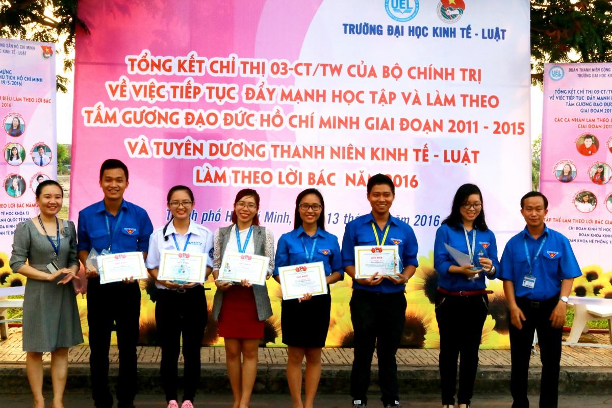 Tại buỗi Lễ, Đoàn trường đã tuyên dương 76 điển hình cá nhân, 04 tập thể làm theo lời Bác năm 2016, trong đó bình chọn ra 10 cá nhân tiêu biểu nhất trên 03 lĩnh vực: học tập - nghiên cứu khoa học, quản lý, hoạt động đoàn thể và văn - thể - mỹ . Cùng 07 cá nhân, 03 tập thể làm theo làm bác tiêu biểu thực hiện Chỉ thị 03 - CT/TW giai đoạn 2011 - 2015; trong đó có nhiều bạn đạt danh hiệu Cán bộ - Giảng viên trẻ, Cán bộ Công chức trẻ - giỏi - thân thiện cấp Thành - ĐHQG HCM, sinh viên 05 tốt cấp Thành, thủ lĩnh sinh viên toàn quốc. Ngoài ra, Đoàn trường cũng các tập thể, cá nhân tham gia tích cực các hoạt động của Ngày hội Thanh niên Kinh tế - Luật làm theo lời Bác 2016.