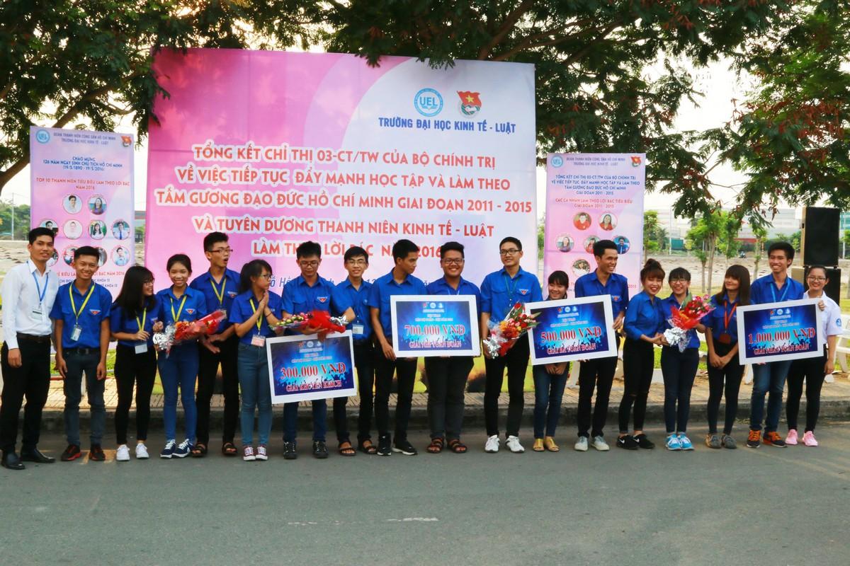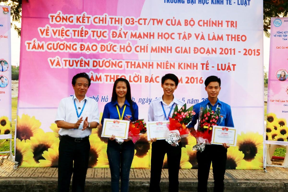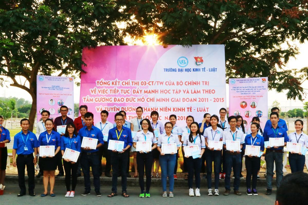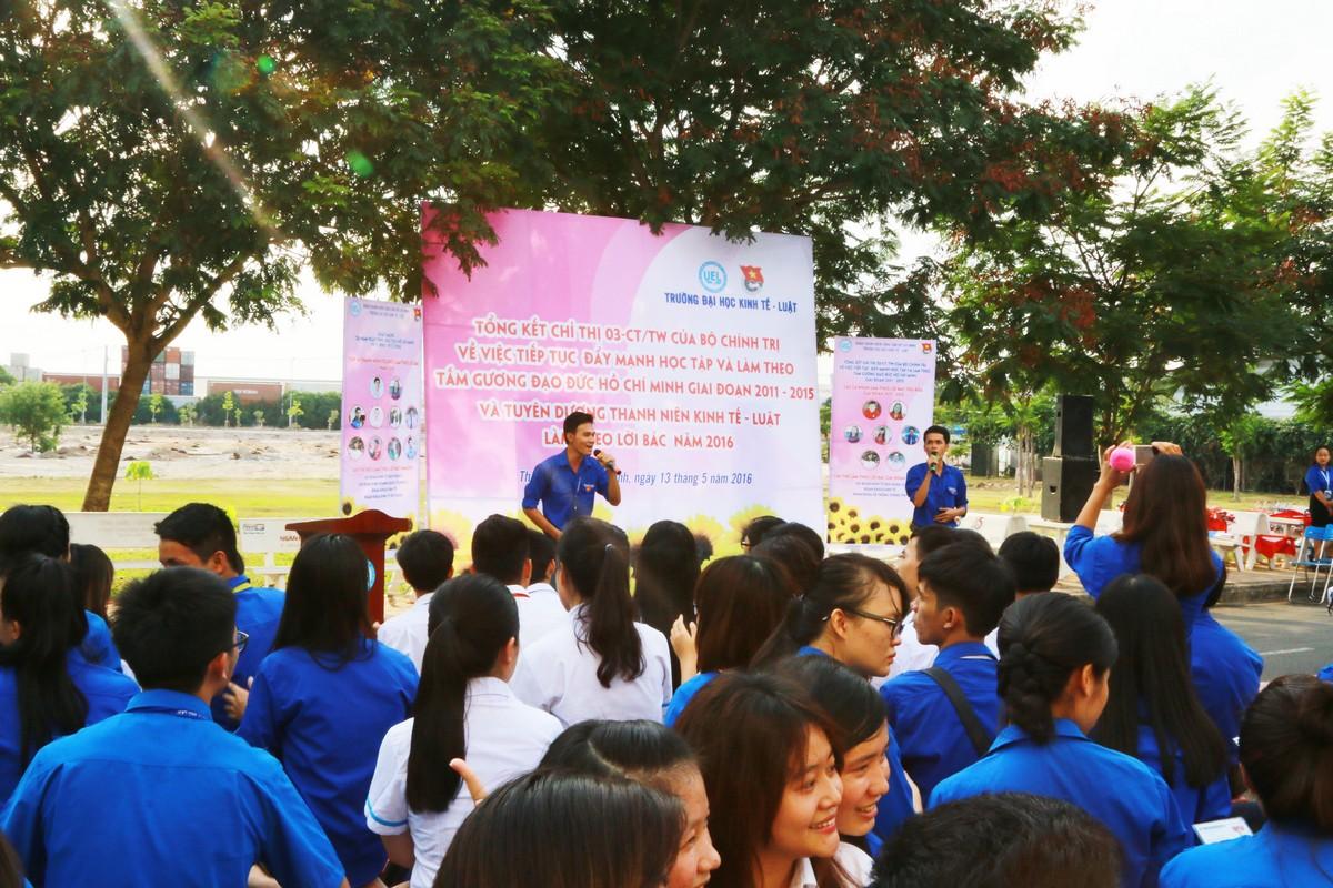 Tại buỗi Lễ, Đoàn trường đã tuyên dương 76 điển hình cá nhân, 04 tập thể làm theo lời Bác năm 2016, trong đó bình chọn ra 10 cá nhân tiêu biểu nhất trên 03 lĩnh vực: học tập - nghiên cứu khoa học, quản lý, hoạt động đoàn thể và văn - thể - mỹ . Cùng 07 cá nhân, 03 tập thể làm theo làm bác tiêu biểu thực hiện Chỉ thị 03 - CT/TW giai đoạn 2011 - 2015; trong đó có nhiều bạn đạt danh hiệu Cán bộ - Giảng viên trẻ, Cán bộ Công chức trẻ - giỏi - thân thiện cấp Thành - ĐHQG HCM, sinh viên 05 tốt cấp Thành, thủ lĩnh sinh viên toàn quốc. Ngoài ra, Đoàn trường cũng các tập thể, cá nhân tham gia tích cực các hoạt động của Ngày hội Thanh niên Kinh tế - Luật làm theo lời Bác 2016.