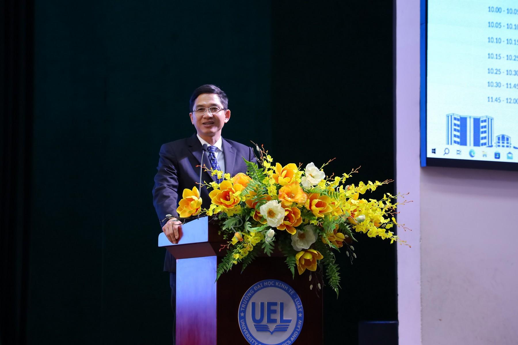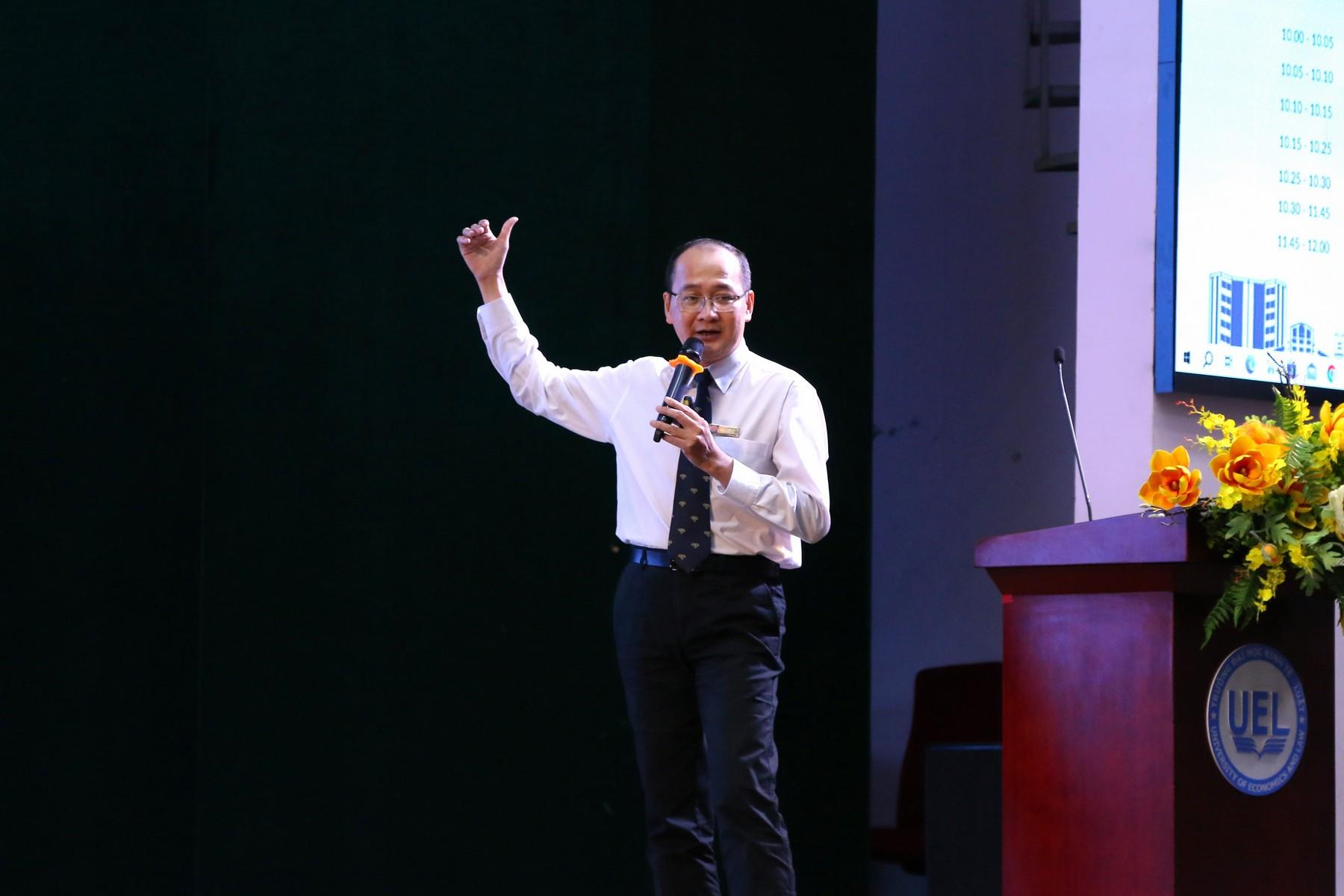 Để cung cấp góc nhìn tổng quan, ThS. Hoàng Thọ Phú-Trưởng Phòng Bảo đảm chất lượng đã trình bày thông tin về công tác đảm bảo chất lượng của Trường, 07 chương trình đào tạo được kiểm định trong đợt này. Bằng tiếp cận "Chất lượng là một quá trình", thời gian qua Trường Đại học Kinh tế - Luật đã thực hiện nhiều cải tiến, cụ thể: i) Thực hiện xếp hạng UPM, ii) Rà soát, xây dựng chương trình đào tạo theo hướng tăng tính linh hoạt, dựa trên sự tự chủ của nhà trường, iii) Áp dụng hệ thống quản lý chất lượng theo tiêu chuẩn ISO 9001-2015, iv) Đẩy mạnh công nhận kết quả học tập và chuyển đổi tín chỉ với các trường trên thế giới, v) Triển khai lộ trình đánh giá mức độ đạt chuẩn đầu ra. Song song đó, Trường triển khai chuyển đổi số trong hoạt động dạy và học, công tác khảo thí. Ngoài ra, ThS. Hoàng Thọ Phú cung cấp thêm về lộ trình, kế hoạch triển khai công tác kiểm định của Trường Đại học Kinh tế - Luật đến năm 2026.