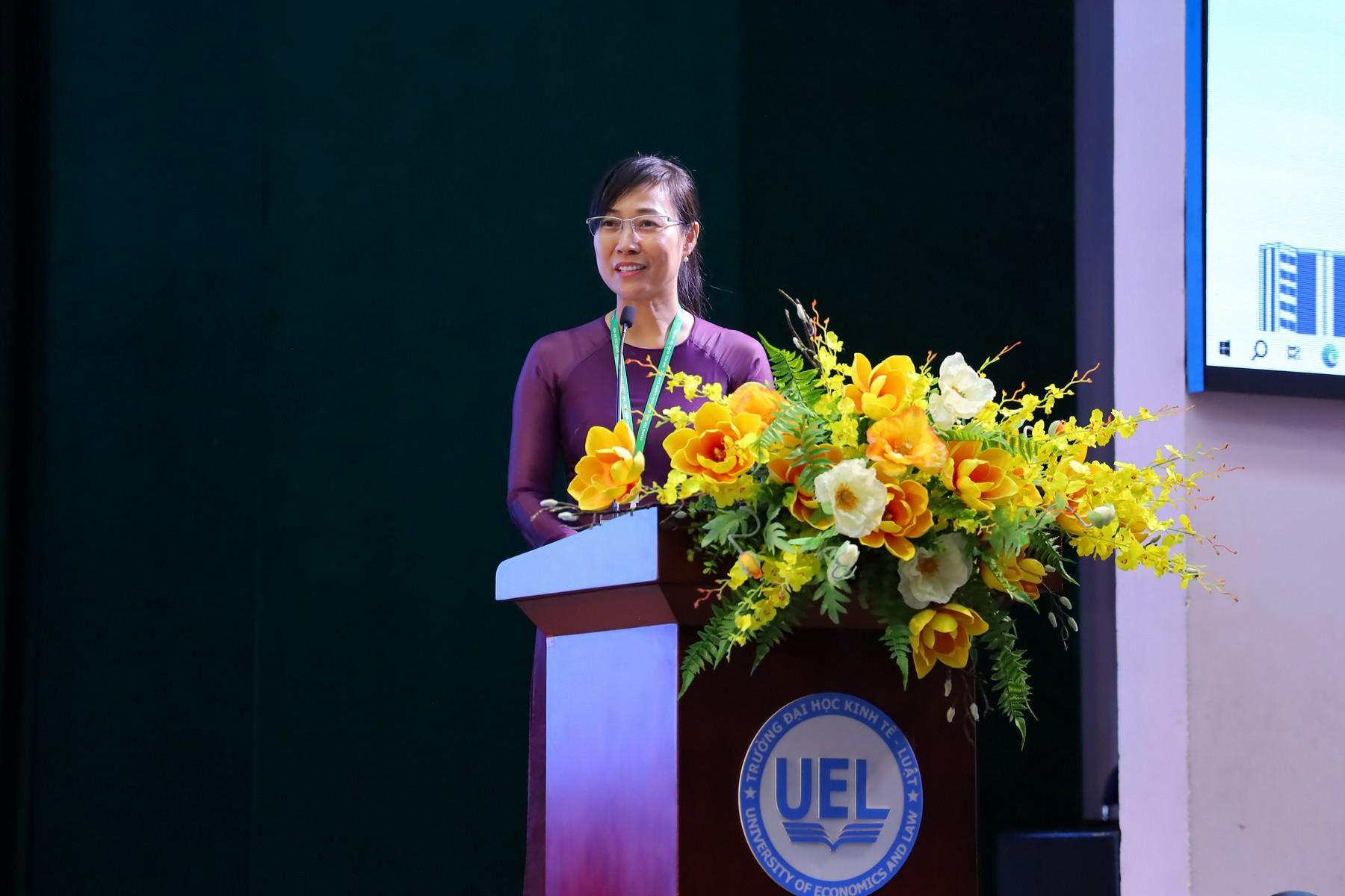 TS. Tạ Thị Thu Hiền-Giám đốc Trung tâm KĐCLGD, ĐHQG-HN phát biểu khai mạc và đánh giá cao sự chuẩn bị của Trường Đại học Kinh tế-Luật