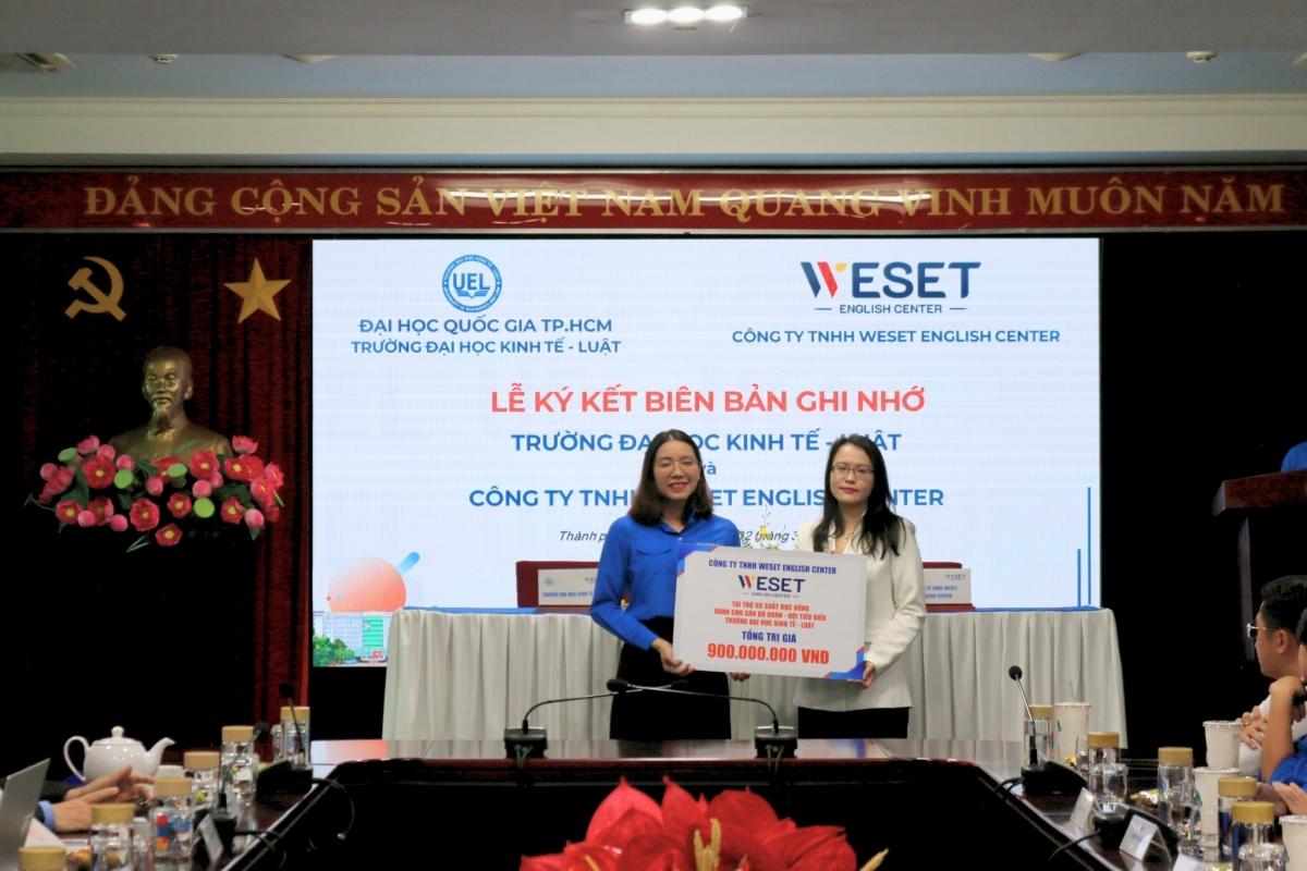 Công ty TNHH WESET English Center tài trợ 60 suất học bổng dành cho cán bộ Đoàn - Hội tiêu biểu Trường Đại học Kinh tế - Luật với tổng trị giá 900.000.000 đồng
