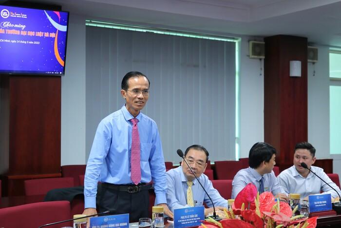 PGS.TS Hoàng Công Gia Khánh - Hiệu trưởng UEL cho biết buổi gặp gỡ, làm việc ngày hôm nay là tiền đề quan trọng, xây dựng mối quan hệ ngày càng sâu sắc hơn giữa hai trường, đồng thời đề nghị một số hướng hợp tác cụ thể với Trường Đại học Luật Hà Nội trong thời gian tới. Cụ thể, trong các hoạt động: khoa học công nghệ và đào tạo, cụ thể là thực hiện công bố trong nước, quốc tế và nghiên cứu phục vụ cộng đồng; trao đổi giảng viên, sinh viên và công nhận tín chỉ lẫn nhau.
