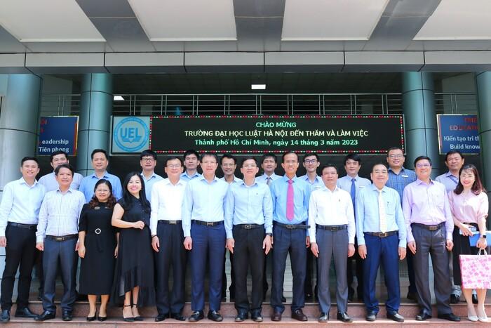 Ngày 14/3/2023, Trường Đại học Kinh tế - Luật (UEL) đã tiếp và làm việc với đoàn công tác Trường Đại học Luật Hà Nội đến thăm, tìm hiểu mô hình quản trị đại học và xác định nhiều chủ đề hợp tác quan trọng trong tương lai.