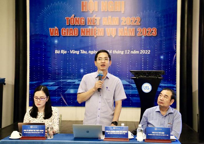 Phát biểu khai mạc hội nghị, PGS.TS Hoàng Công Gia Khánh đã chỉ ra bối cảnh, các điều kiện thuận lợi và thách thức diễn ra trong năm 2022. Qua đó, nhấn mạnh "Hội nghị tổng kết năm 2022 và giao nhiệm vụ năm 2023" là một sự kiện hết sức quan trọng và là dịp để tập thể lãnh đạo nhà trường cùng nhìn nhận lại hoạt động trong năm vừa qua, đồng thời là nơi để Ban giám hiệu cùng các đơn vị thảo luận các ý tưởng, sáng kiến mới nhằm đề ra phương hướng thực hiện hiệu quả mục tiêu và chiến lược cho năm 2023.