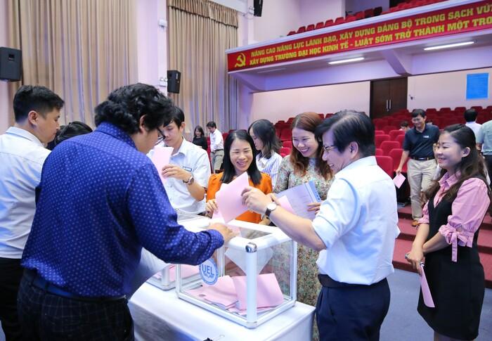 Tại Hội nghị, các đại biểu đã được cung cấp thông tin đầy đủ về các quyết định phê duyệt quy hoạch: (1) Các chức danh lãnh đạo, quản lý; các chức danh cấp ủy thuộc thẩm quyền Giám đốc ĐHQG-HCM, Đảng ủy ĐHQG-HCM bổ nhiệm; (2) Các chức danh lãnh đạo, quản lý thuộc diện Đảng ủy Trường Đại học Kinh tế - Luật quản lý. Thay mặt Tổ kiểm phiếu, đồng chí Võ Văn Trọng - Uỷ viên BTV Đảng uỷ, Chủ nhiệm UBKT Đảng ủy Trường - Tổ trưởng đã hướng dẫn thực hiện công tác lấy phiếu các bước Hội nghị, cụ thể gồm 4 bước: