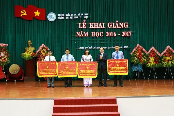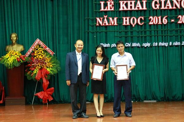 Sau bài diễn văn chào mừng năm học mới 2016-2017 của PGS.TS Nguyễn Tiến Dũng - Bí thư Đảng ủy, Hiệu trưởng Nhà trường là phần khen thưởng dành cho các tập thể và cá nhân có thành tích tiêu biểu trong năm học 2015-2016.