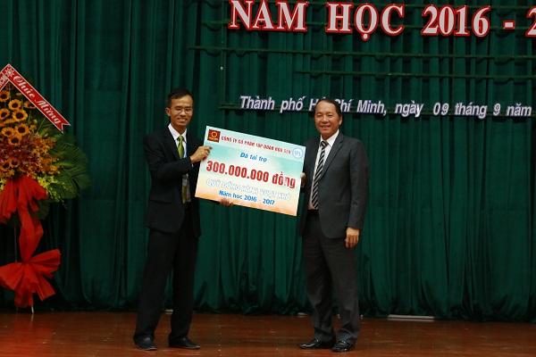 Tại lễ khai giảng này, các cá nhân, tổ chức, doanh nghiệp đối tác đã trao học bổng cho các thủ khoa và tài trợ hơn 2,5 tỷ đồng cho học bổng cùng các hoạt động khác trong năm học 2016 - 2017 của Nhà trường.