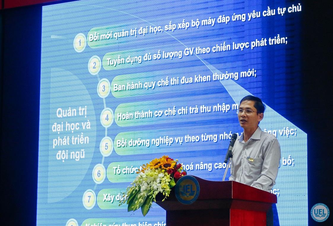 PGS.TS Hoàng Công Gia Khánh - Phó Hiệu trưởng nhà trường trình bày dự thảo phương hướng,