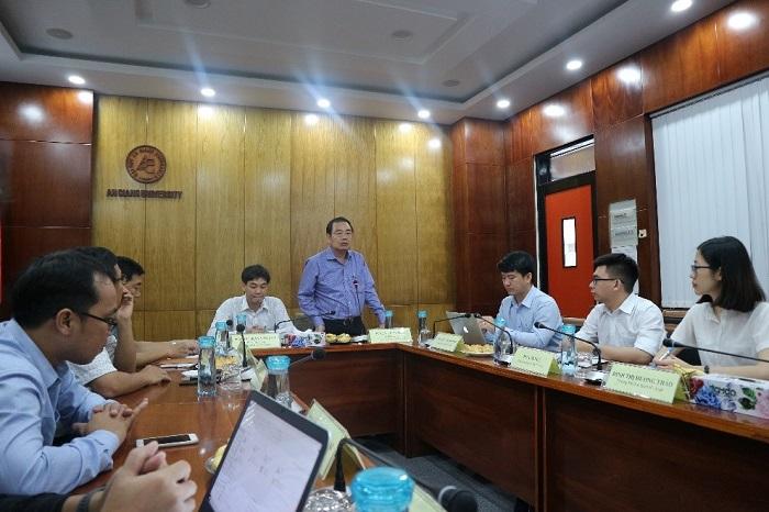 PGS.TS Lê Vũ Nam - Phó Hiệu Trưởng Trường Đại học Kinh Tế - Luật phát biểu Tại buổi giao lưu, Trường Đại học An Giang đã chia sẻ mô hình đảm bảo chất lượng bên trong, hoạt động triển khai tự đánh giá nội bộ các chương trình đào tạo, xây dựng và quản lý hệ thống cơ sở dữ liệu phục vụ cho công tác tự đánh giá chương trình đào tạo và cơ sở giáo dục, hoạt động khảo thí tại Trường.