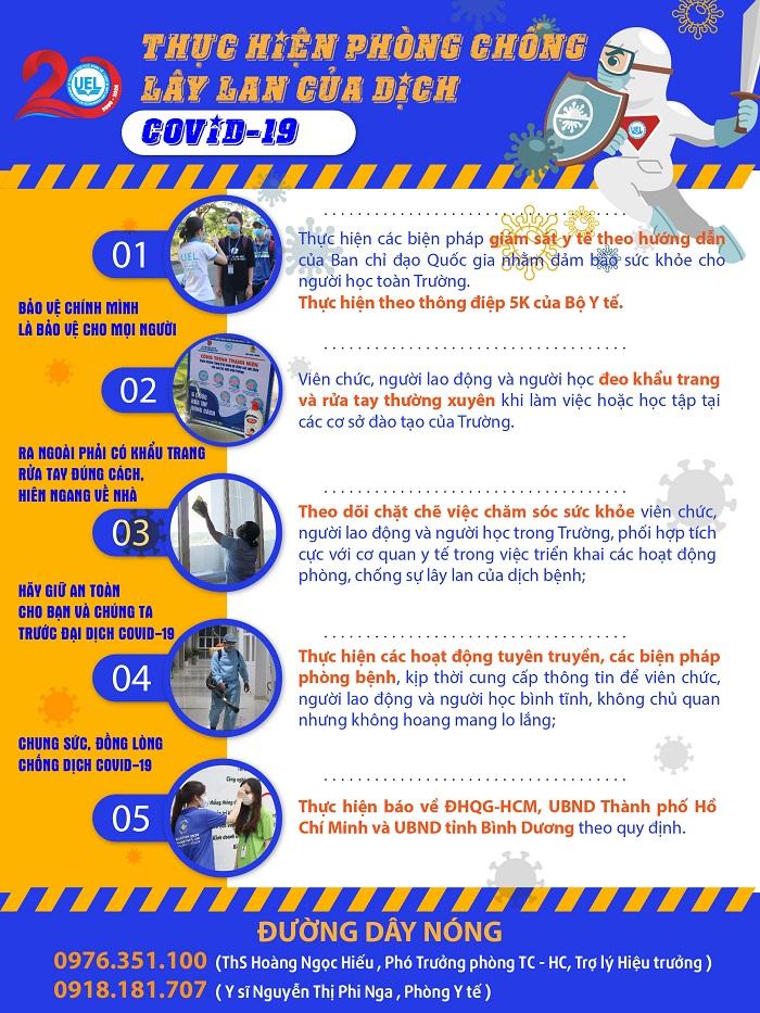Trước diễn biến mới của dịch Covid-19 tại Thành phố Hồ Chí Minh, nhằm kiểm soát chặt chẽ dịch bệnh và ngăn ngừa không để lây lan trong cộng đồng, Ban chỉ đạo phòng chống dịch Covid-19 của Trường Đại học Kinh tế - Luật triển khai thực hiện các nội dung như sau: