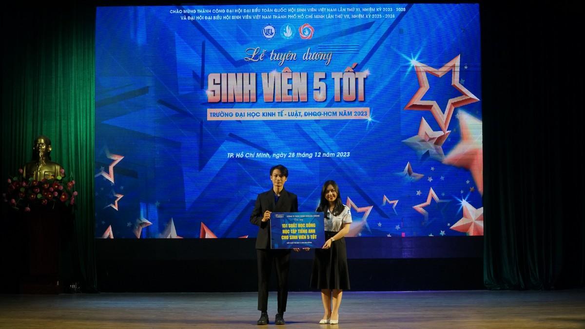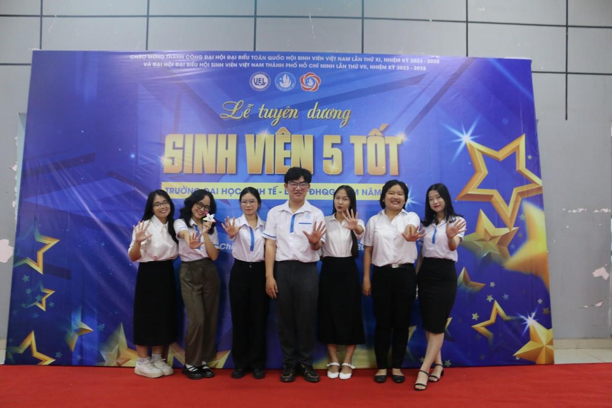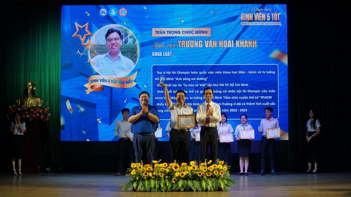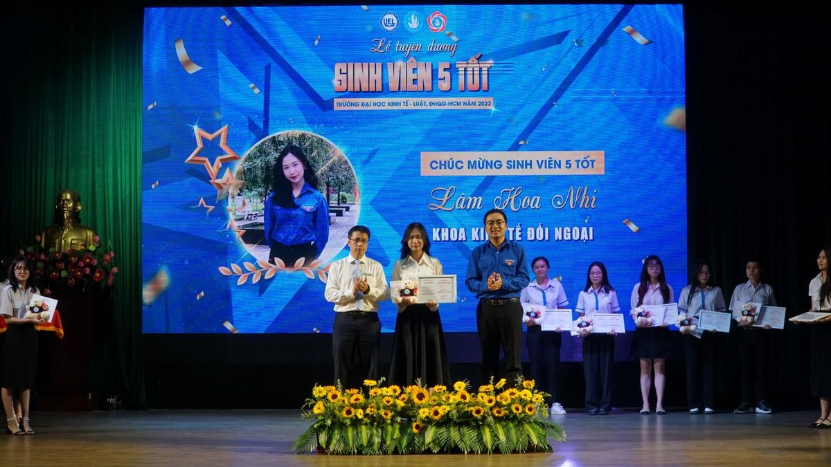 Tại Lễ tuyên dương, Đ/c Trần Thị Kiều Anh - Chủ tịch Hội Sinh viên Việt Nam Trường đã báo cáo tóm tắt Báo cáo tổng kết phong trào "Sinh viên 5 Tốt" năm 2023 và phát động thực hiện phong trào "Sinh viên 5 tốt" năm 2024. Bằng những hoạt động và định hướng hoạt động trong năm, Hội Sinh viên Việt Nam Trường Đại học Kinh tế - Luật đã cụ thể hóa các tiêu chí "5 Tốt" bao gồm: Đạo đức tốt - Học tập tốt - Thể lực tốt - Tình nguyện tốt - Hội nhập tốt một cách có hiệu quả. Và cũng từ thực tiễn phong trào, nhiều tấm gương "Sinh viên 5 Tốt" đã được phát hiện, phát triển cả về số lượng lẫn chất lượng, tiếp tục được bồi dưỡng giới thiệu vào hàng ngũ của Đảng. Những nỗ lực của các cấp cán bộ Hội và minh chứng cho việc sinh viên đã có tinh thần chủ động hơn với phong trào, là nền tảng để tiếp tục định hướng đẩy mạnh thực hiện phong trào "Sinh viên 5 tốt" trong những năm tới. Trong năm 2023, Trường Đại học Kinh tế - Luật có 740 sinh viên đạt danh hiệu "Sinh viên 5 Tốt" cấp Khoa, 151 sinh viên đạt danh hiệu "Sinh viên 5 Tốt" cấp Trường. Trong đó, có 12 sinh viên "Sinh viên 5 Tốt" tiêu biểu cấp Trường năm 2023, 36 sinh viên xuất sắc đạt danh hiệu "Sinh viên 5 Tốt" cấp Trường 02 năm liên tục, 17 sinh viên xuất sắc đạt danh hiệu "Sinh viên 5 Tốt" cấp Trường 03 năm liên tục. Ghi nhận 03 đơn vị đạt danh hiệu "Tập thể Sinh viên 5 Tốt" cấp Trường năm 2023 (Liên Chi hội Khoa Luật Kinh tế , Chi hội Quản trị Du lịch và Lữ hành Khóa 21, Chi hội Marketing Chất lượng cao Khóa 22).