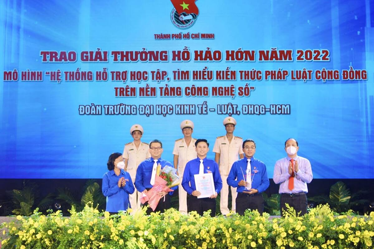 Giải thưởng Hồ Hảo Hớn với mô hình hiệu quả “Hệ thống hỗ trợ học tập, tìm hiểu kiến thức pháp luật cộng đồng trên nền tảng công nghệ số”.